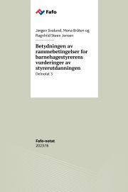 Betydningen av rammebetingelser for barnehagestyrerens vurderinger av styrerutdanningen Delnotat 3 | 23. januar 2024 | Jørgen Svalund, Mona Bråten og Ragnhild Steen Jensen | Rapportside | |